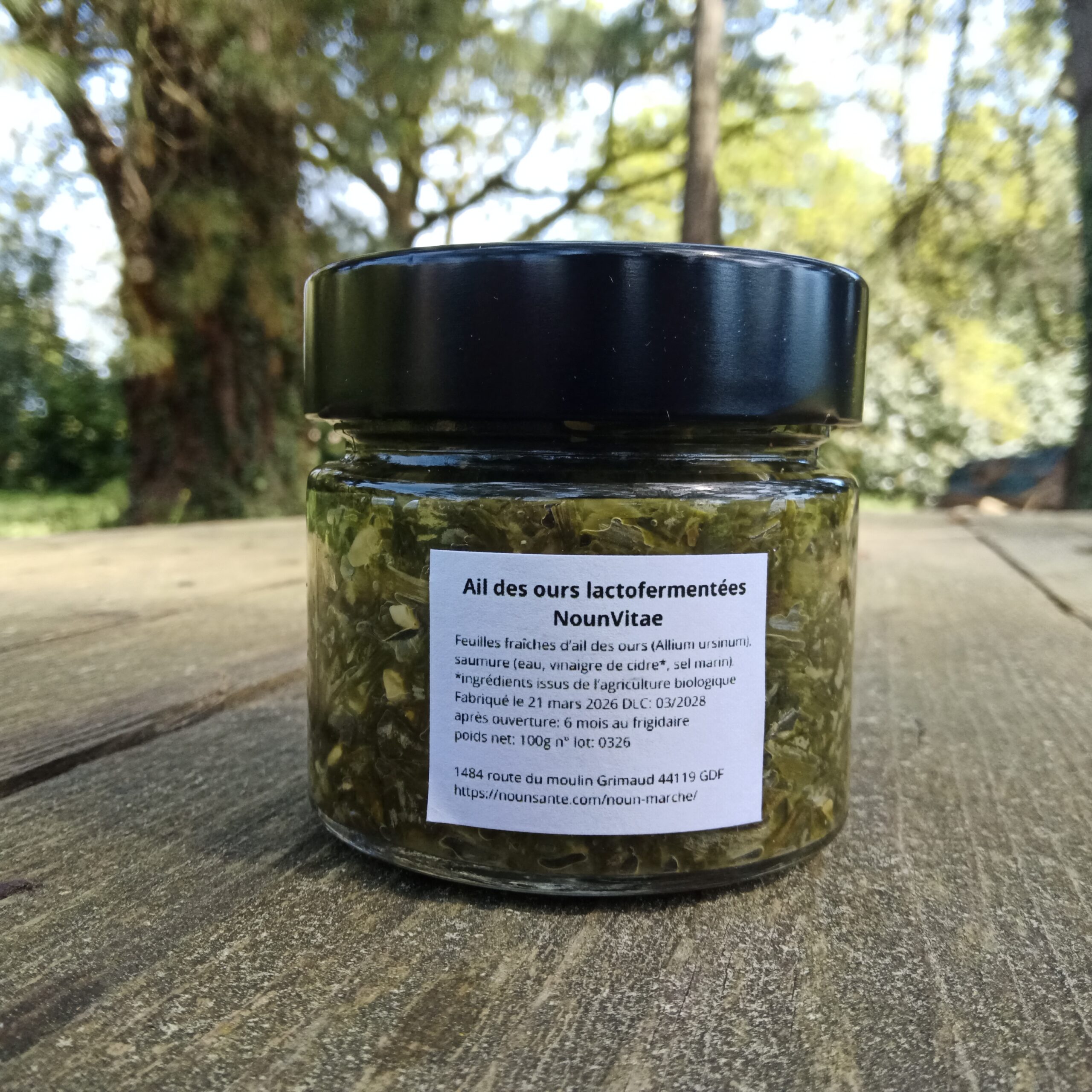 Feuilles fraîches d’ail des ours (Allium ursinum), saumure (eau, vinaigre de cidre*, sel marin)